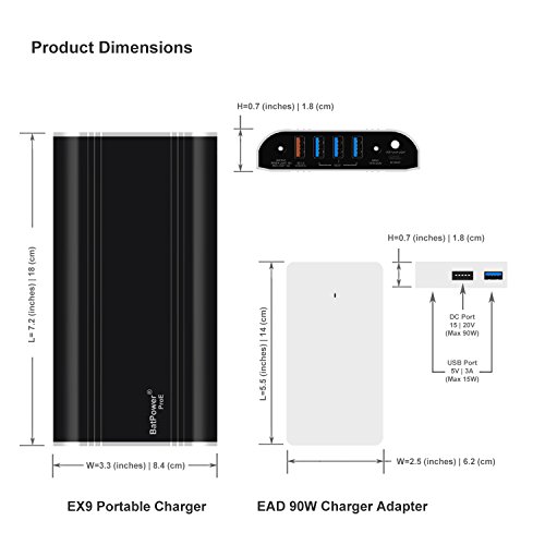 - Packing list: BatPower ProE EX9 Portable Charger Power Bank, EAD 90W Slim Adapter, MagsafeL and Magsafe2 T Cable, USB to Type C Cable, Adapter Cable(charge for ProE Portable Charger), AC Power Cord, Instructions Manual. (Note: if Sold by Euro, will be packed UK and EU Power Cords).