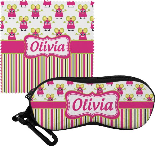 -. Title : Pink Monsters & Stripes Eyeglass Case & Cloth (Personalized)