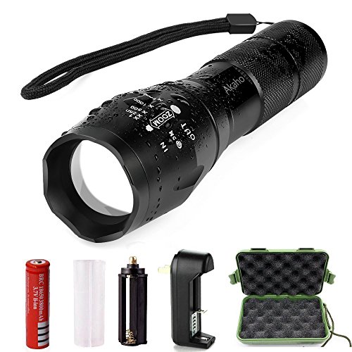 Akaho LED Tactical Flashligh - High Lumen Zoomable Handheld Flashlight - Water Resistant,Super Bright Torch with 5 Light Modes - For Outdoors Camping Emergency - Rechargeable 18650 Lithium Ion Battery