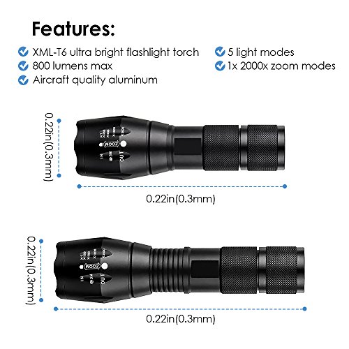 ♥ SPECIAL POWER: XML T6 Tactical Flashligh has High-Efficiency and Great Output LED Chip, Super Bright Tac Light.