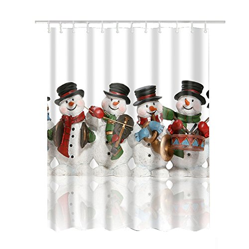 Hoomall Christmas Snowman Shower Curtain Fabric Waterproof Muilt Function 70x70 Inches