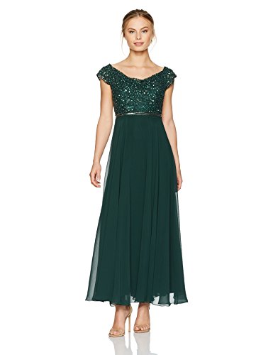 J Kara Women's Petite Beaded Empire Waist Gown, Hunter/Mercury, 8P