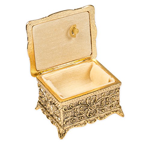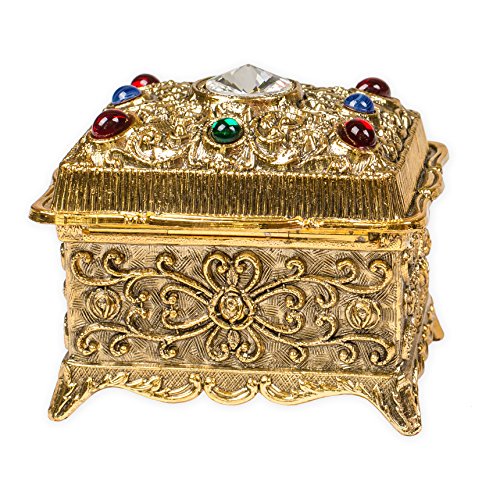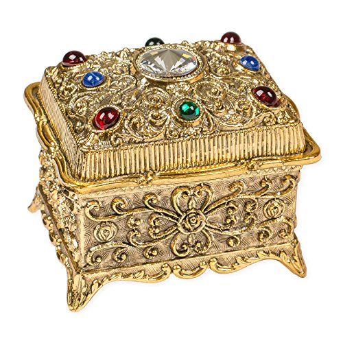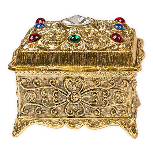 Trunk Shaped Swarovski Crystal Jewel Gold Tone Metal Music Box Plays Tune Lara's Theme