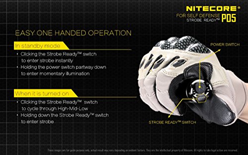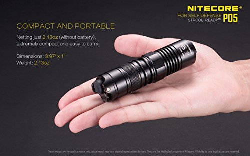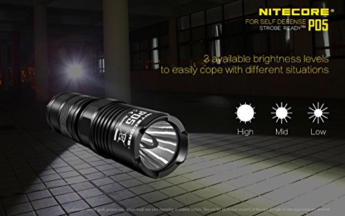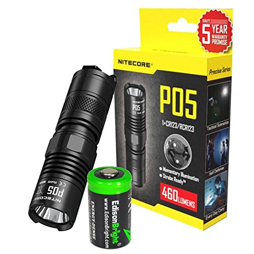 NITECORE P05 460 Lumens high intensity CREE LED Strobe Ready self defence flashlight ( Black body) with EdisonBright CR123A Lithium Battery