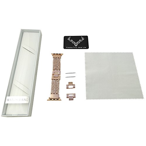-. Feature : Special CZ Crystal Stones Chain Designed for Apple Watch, Single Sparkle Strass Jointed Ensures Great Ventilasion and Light Weight, Chic Jewelry Iwatch Band (Watch Not Included) / Folding Clasp for Simple Operation and Security, Opening and Closing Easily, Length Adjusted In Seconds By Hand Only, Fits Wrist Size From 5.5" - 7.5" (139mm-197mm), More Extra Link Clasp Sold in Our Amazon Shop for Longer Length Extension Need. / Premium Stainless Steel Adapter Locks Your Iwatch Interface Precisely and Securely, Colors Matched with Series 1, 2, Sport Edition, + & . / Comes With Gift Box, Perfect Gift for You Or Beloved, 7*24 Customer Passionate Service Provided, Longtime Warranty. More Extra Link Clasp Sold In Our Shop If Need By: https://www.amazon.com/dp/B0746BLK25 / Fresher® Is a Registered Trademark In US, Photography of Real Item, What You See Is What You Get! (Please Beware Of Imitations Listings- i.e. Cheap Plating Or Metal)