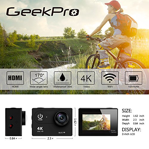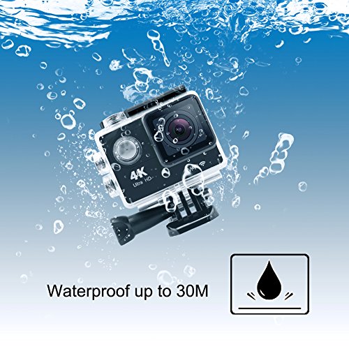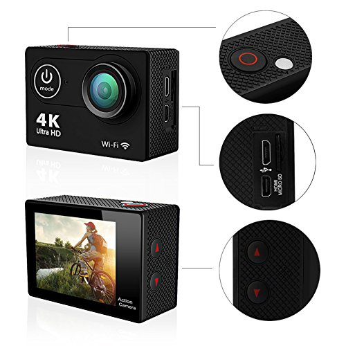 Ultra HD video and picture capability.It shoots 4K at 15fps, 2.7K at 30fps, 1080p at 60fps and 1080p at 30fps. It may record about 70mins with the 1050mAh rechargeable battery(recording time depends on the mode and resolution you selected).