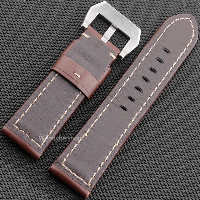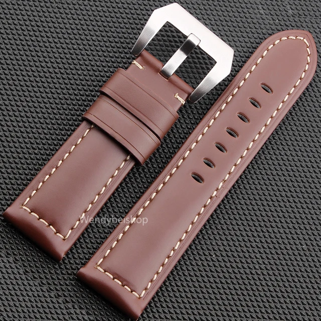 | [해외] 22 24 26 미리메터 최신 남성 여성 블랙 브라운 진짜 가죽 수제 두꺼운 손목 시계 밴드 밴드 스트랩 벨트 닦았 사전 V 나사 버클 |