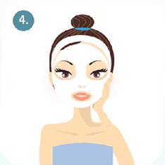 Kenakan masker Qva pada wajah Anda (lapisan serat biocellulose menempel pada kulit wajah Anda).