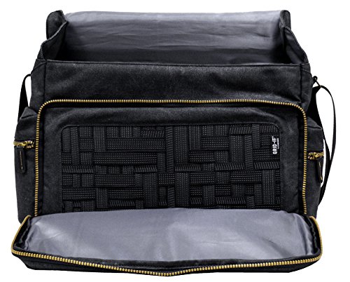 -. Feature : Built-in 13.25" x 5.75" GRID-IT! Front Pocket, Padded Laptop Compartment Fits up to 16" laptop, dedicated Tablet Compartment, Interior Document Pocket / Exterior Easy Access Zipper Document Pocket, Convenient Pocket Organizers for Additional Storage with Built-In key chain and Media Pocket Keeps Small Devices Handy / Water Resistant Wax Canvas Exterior