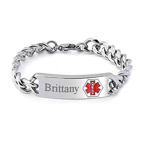 이 의료ID팔찌는 독창적인 생각은,우수한 패션True기능과 퓨즈입니다.이 스테인레스제 의료용ID팔찌 강력한,내구성,당신의 손목의 주위에서 보호 된 어떠한 체재 하고 있습니다. 팔찌의 센터 태그는,국제 의료 심볼과 판화의 스페이스 자기자신에 관한 중요한 의료 정보나 긴급의 경우에 다른 누군가가 기능합니다.남성과 여성에서는,이러한 의료의 팔찌는 당신의 생명을 구할 가능성이 있는 보석류가 아름다운 부분이다.* 이름의 각인이 되고 있는 사진은 아이디어 견본이고, 당점에서는 각인 서비스는 다루고 있지 않습니다.