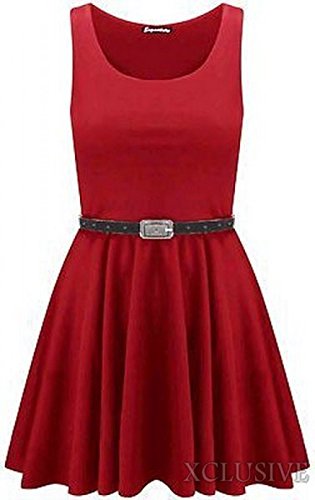 -. Title : 新しいレディースプラスサイズベルト付きノースリーブスケーターGoing Outドレス( 12 / 14 ,レッド)