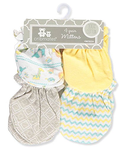 Product DescriptionKeep baby scratch-free with these adorable Cribmates mittens! Cribmates 4-pack scratch mittens Cotton construction Elasticized cuffs Patterns as shown 100% cotton Machine wash warm Imported0