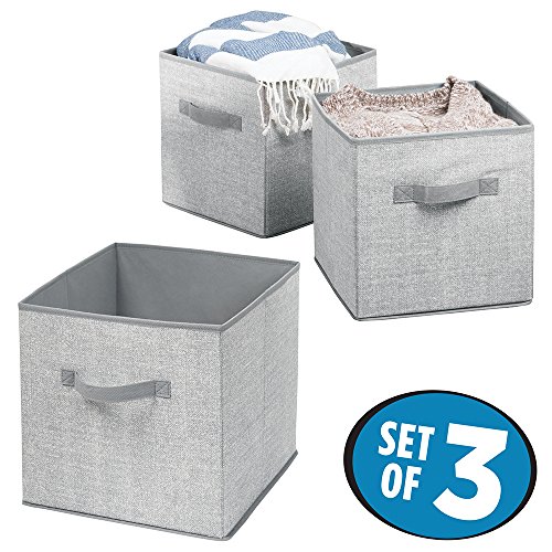 mDesign Closet Storage Organizer Cubes for Blankets, Shirts, Sweaters, Toys - Set of 3, Gray