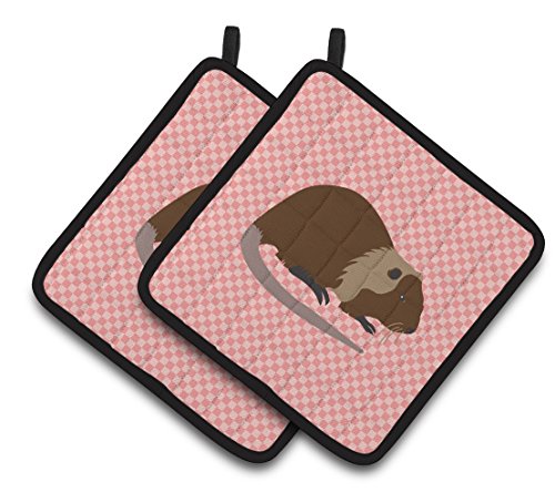 Caroline's Treasures BB7879PTHD Coypu Nutria River Rat Pink Check Decorated Pot Holder, 7.5" x 7.5", Multicolor