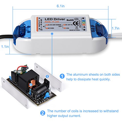 iHomy Power Adapter, Transformers, Power Supply For SMD 3528 5050 LED Strip Lights, Output 12V DC, 5A Max, 60 Watt Max with 24Key IR Remote Controller