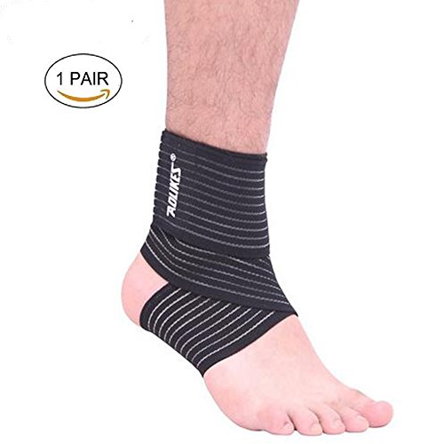 ANMKOT 2PCS Black Elastic Breathable Wrap Ankle Support with Velcro Straps