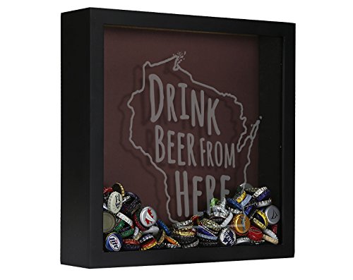 Beer Cap Shadow Box, Drink Beer From Here: Wisconsin