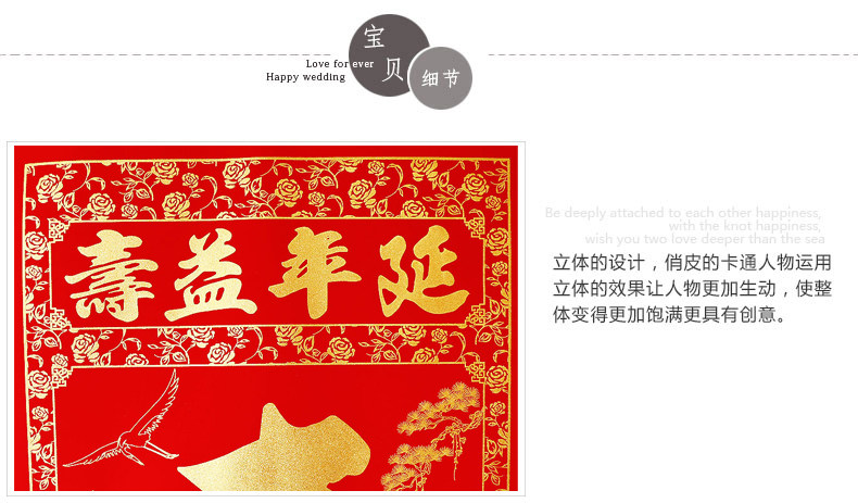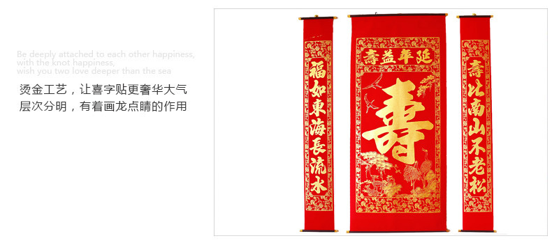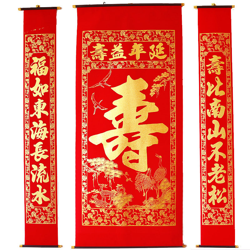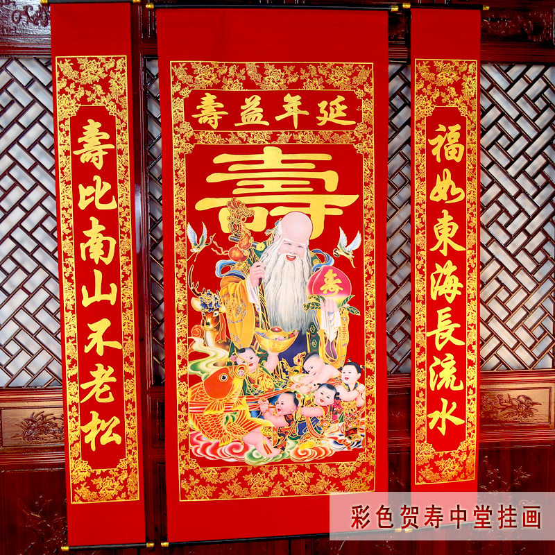 (2) Zhu Shouzhongtang couplet, there are two styles of 1.6 meters high, one for the life of the Church painting, one for the Xiantao Shou Tang painting, please pay attention to the length of the style selection. 1.6 cents longevity in the middle of five children, 2 cents longevity in the middle of two children, the specific pattern, please ask customer service, details page also said that you can take a general look.