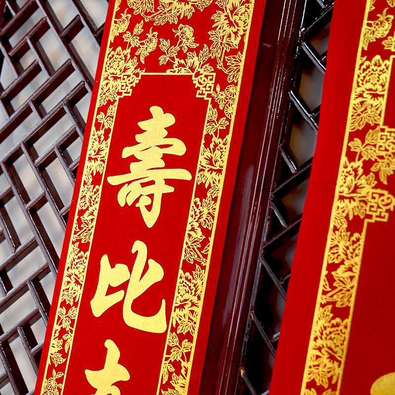 (1)寿字中堂画对联高1.6米,宽度为1.2米(28cm-68cm-28cm);中堂画对联高2米,宽度为1.7米(37cm-95cm-37cm)。