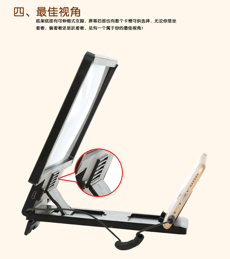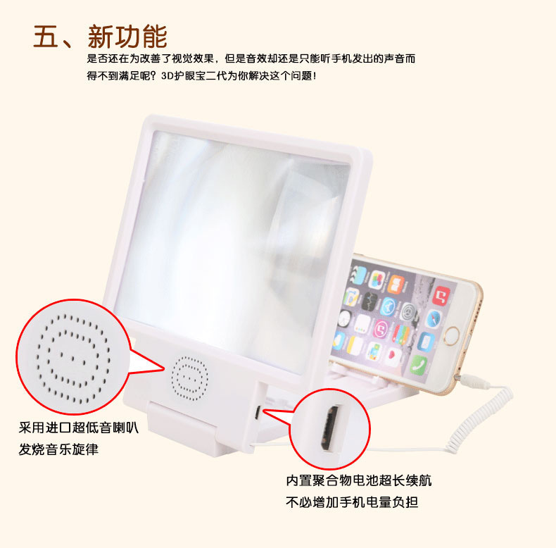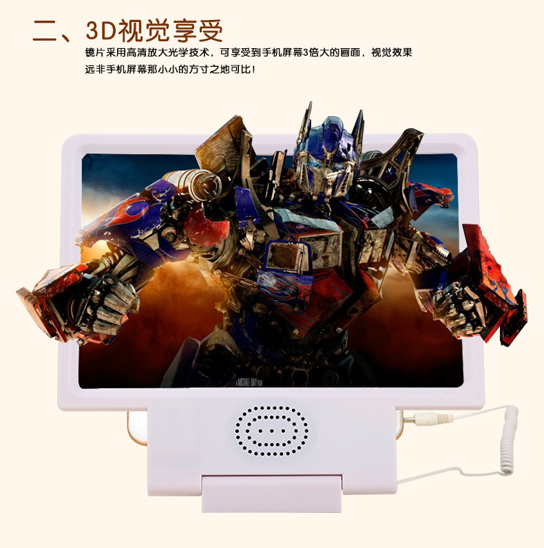 3D treasure F8 mobile phone screen amplifier with stereo speakers HD video magnifier