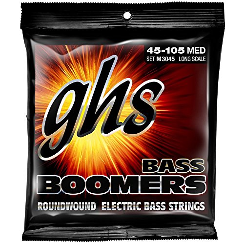 GHS Strings M3045 4-String Bass Boomers, Nickel-Plated Electric Bass Strings, Long Scale, Medium (.045-.105)