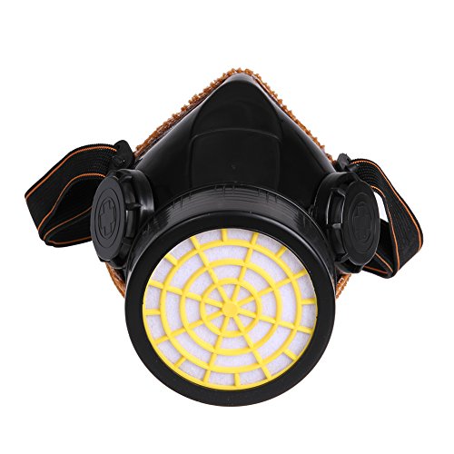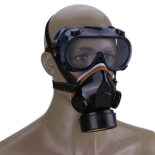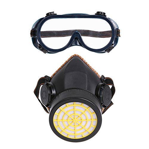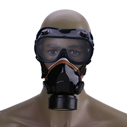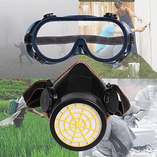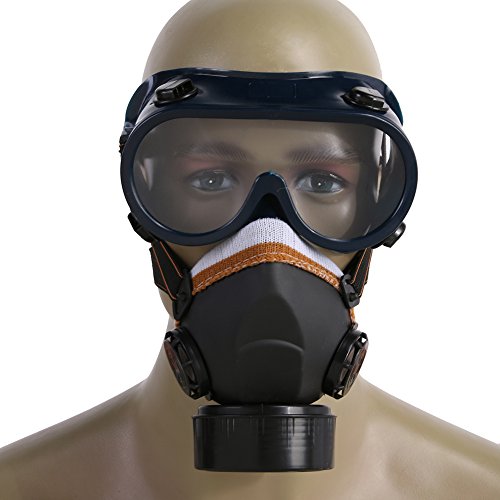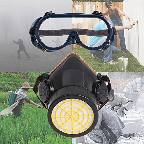 -. Feature : The mask is fitted with one filters, which can be dust-proof. / Eyeglasses can also be used independently to polish dust, test paint, paint spray, and stone iron. / Range of application: Suitable for contact with organic steam, benzene and other homologues, gasoline, pesticides, acetone and carbon disulfide, ether etc working man. / Mask structure: The mask consists of main body, filter box, breathing valve and belt. / Package Includes: 1 X Dust Mask 1 X Dust Eye Mask.