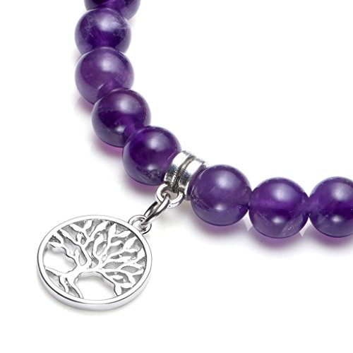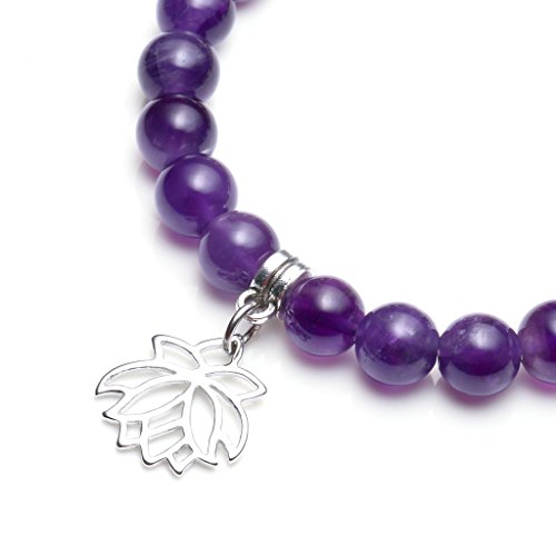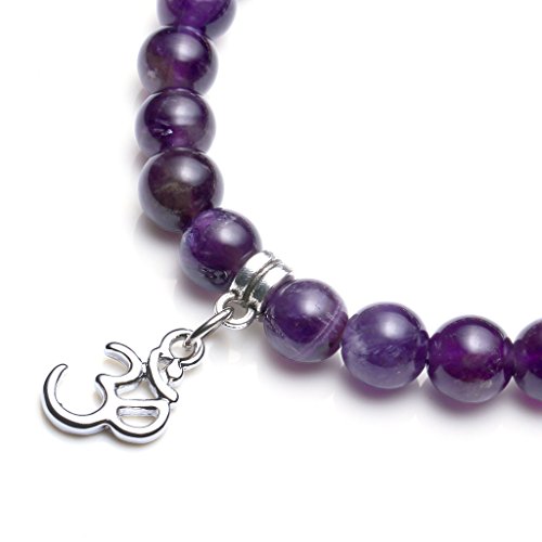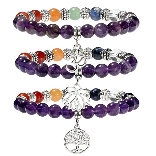 Top Plaza 7 Chakra Healing Crystal Gemstone Beads Tree of Life Lotus OM Symbol Natural Amethyst Stretch Bracelet(8mm Beads)