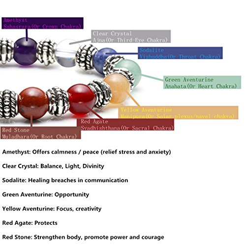 - Material: Amethyst & 7 Chakra Stones & Alloy Charms (7 Chakra Stones: Amethyst, White Crystal, Sodalite, Green Aventurine, Yellow Aventurine, Red Agate, Red Stone) - Because the bracelet made by natural stone, each with unique color, the bracelet beads may not same as the picture shown.
