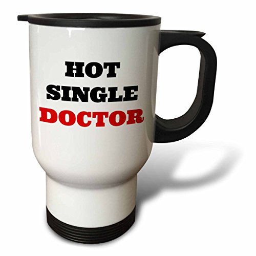 3dRose Hot Single Doctor Travel Mug, 14 oz, Stainless Steel, White