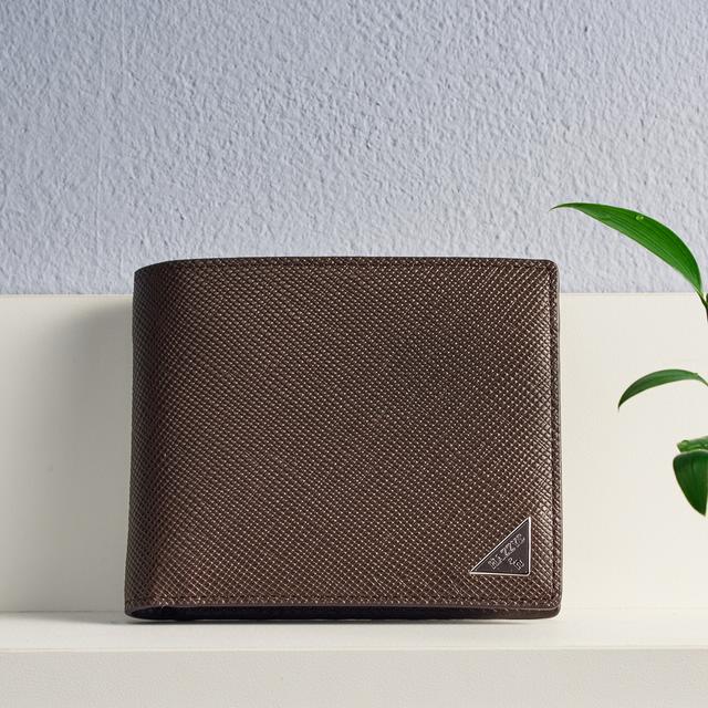 사이드 하단의 삼각 로고 장식으로 심플한 디자인에 포인트를 준 반지갑입니다.