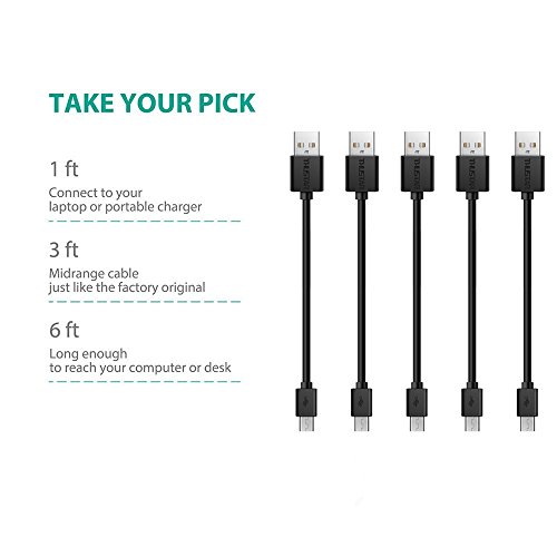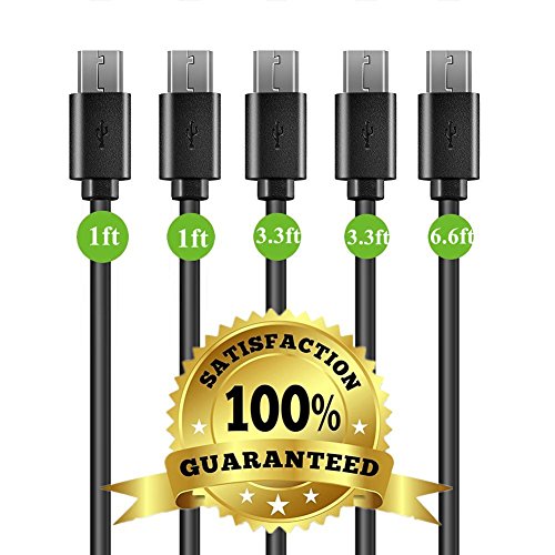 Micro USB Cable Android, Thustar Family 5-Pack (1ft, 3.3ft, 6ft) USB to Micro USB Cables High Speed USB 2.0 Sync and Charging Cables for Samsung, HTC, Motorola, Nokia, Kindle, MP3, Tablet and more