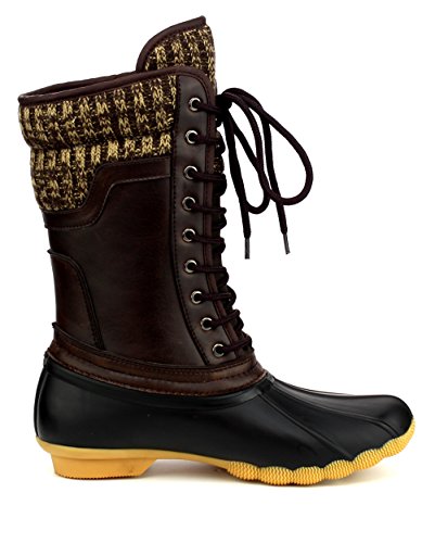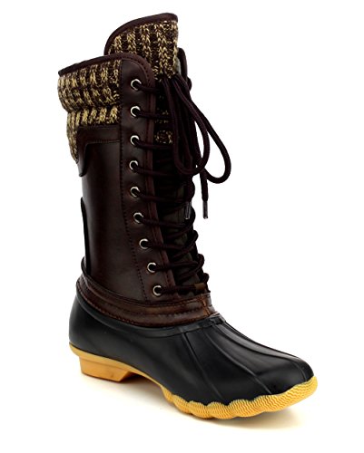 This boot has excellent waterproof protection keeping your foot dry at all times. It feature a combination of faux leather/PVC upper, lace up front and skid-resistant soles. Its super soft tongue, collar and footbed comfort your foot gently.
