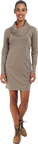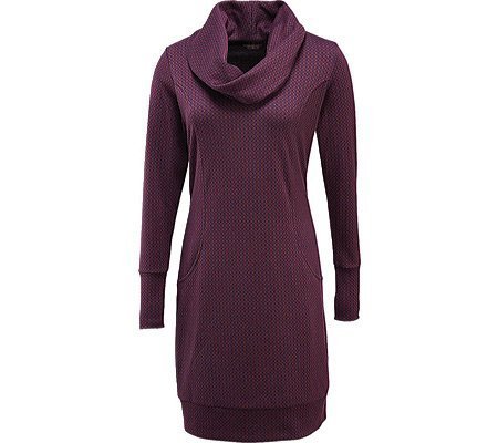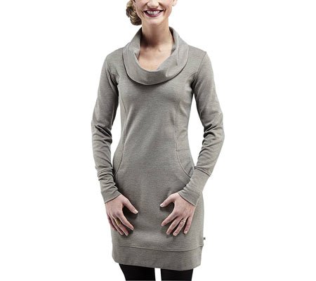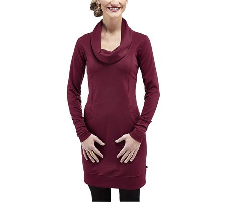 Warm up by the fire with friends after a day on the slopes in this casual cowl neck dress made with a super comfortable double-knit Ponte fabric.