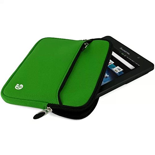 VanGoddy Soft Neoprene Tablets Sleeve / Zipper Carrying Case Pouch for 7-8inch Tablets / e-Reader (Green/Black Trim)