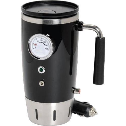 -. Feature : Thermal insulated / Analog Temperature Gauge / Plugs into 12V power outlet in a motor vehicle / On/off toggle switch / Sealing Lid with Sip control Slider / Ready Light / Nonskid Rubber Base / Keeps your drink warm while you drive