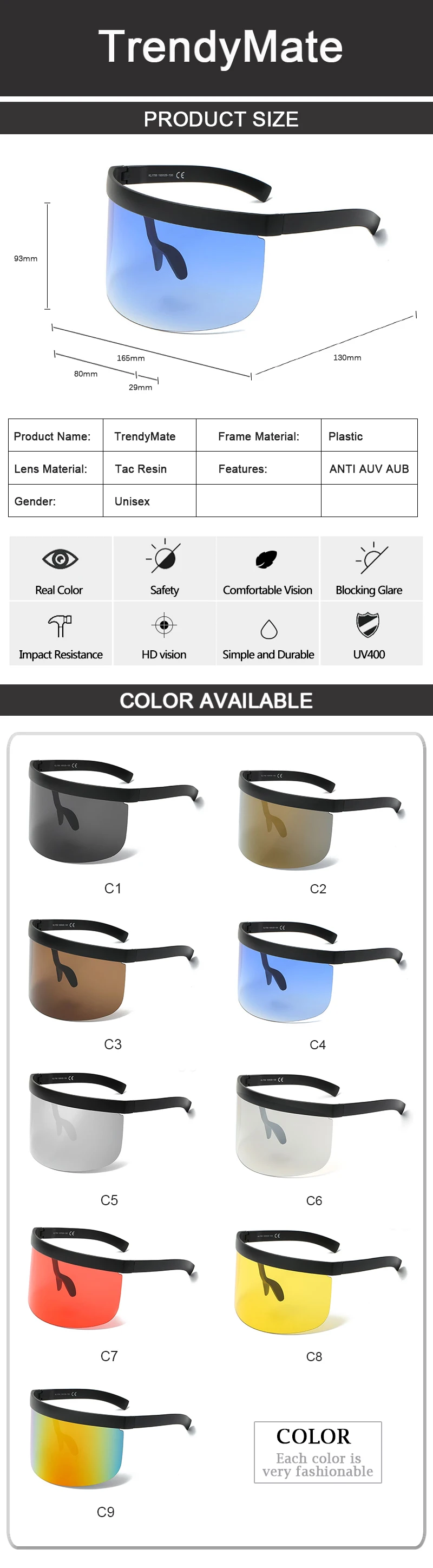 Sunglasses Function:UV400 Protection Against Harmful UVA/UVB RAYS