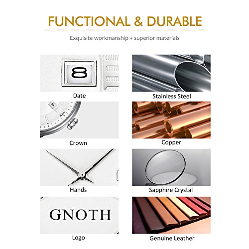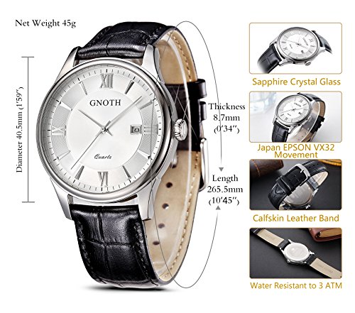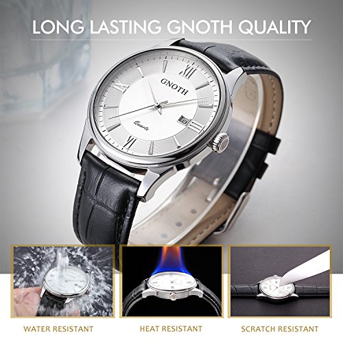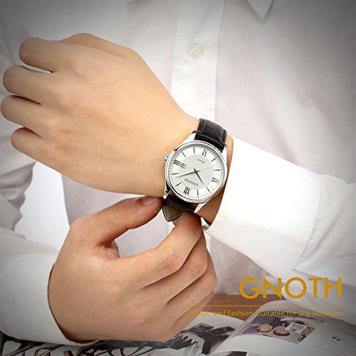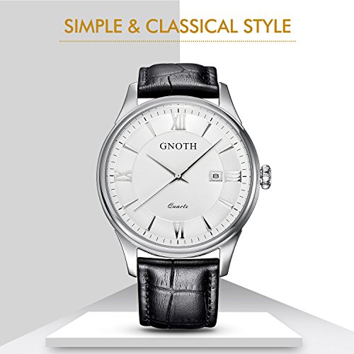 -. Title : GNOTH Men's Classic Casual Analog Quartz Wrist Watch with Durable Black Genuine Leather Band and Date