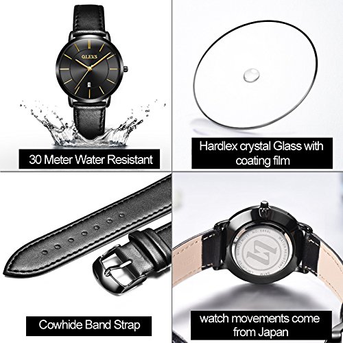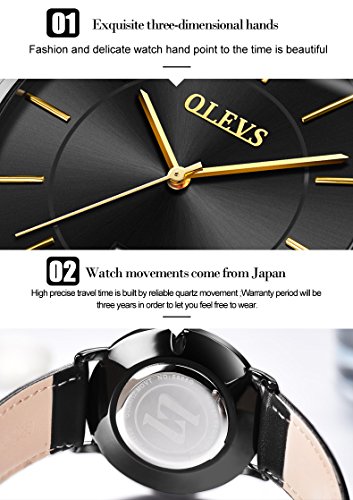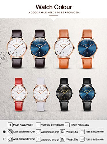 -. Title : OLEVS 2pcs Couple Quartz Automatic Waterproof UltraThin Genuine Leather Band Wristwatches Set for His and Her, Valentines Gift