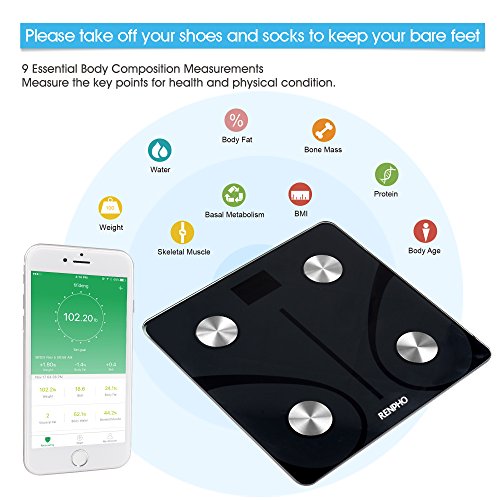4.0 BLUETOOTH Connectivity: The Smart Scale can connect with your smartphone via APP "RENPHO"(FREE downloaded from Apple Store & Google Play). "RENPHO" app works well with Android 4.3 & IOS 7.0 or above system.
