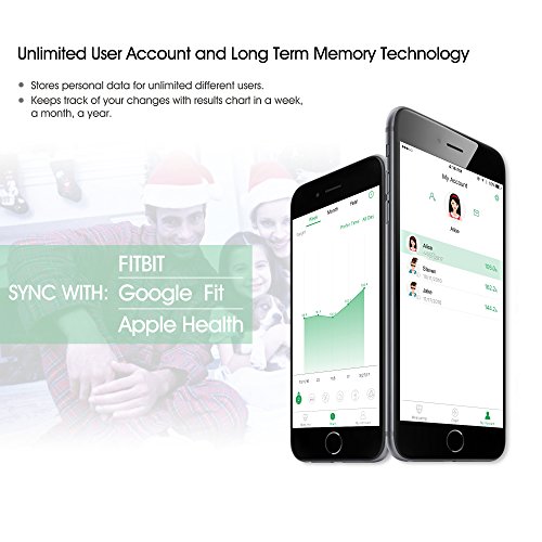 SYNCE WITH FITBIT APP, APPLE HEALTH & GOOGLE FIT, UNLIMITED USERS: RENPHO app syncs with weighing metrics with Fitbit App, Google Fit, and Apple Health easily! The app RENPHO is designed for whole family. You can create unlimited member accounts for your family members.