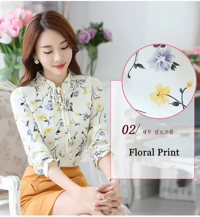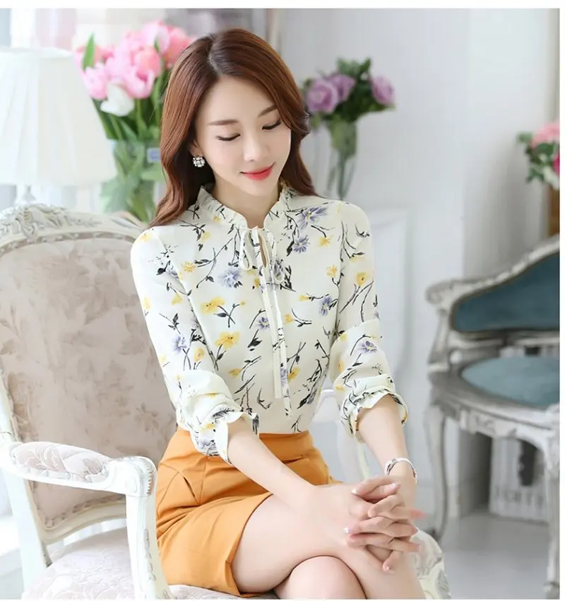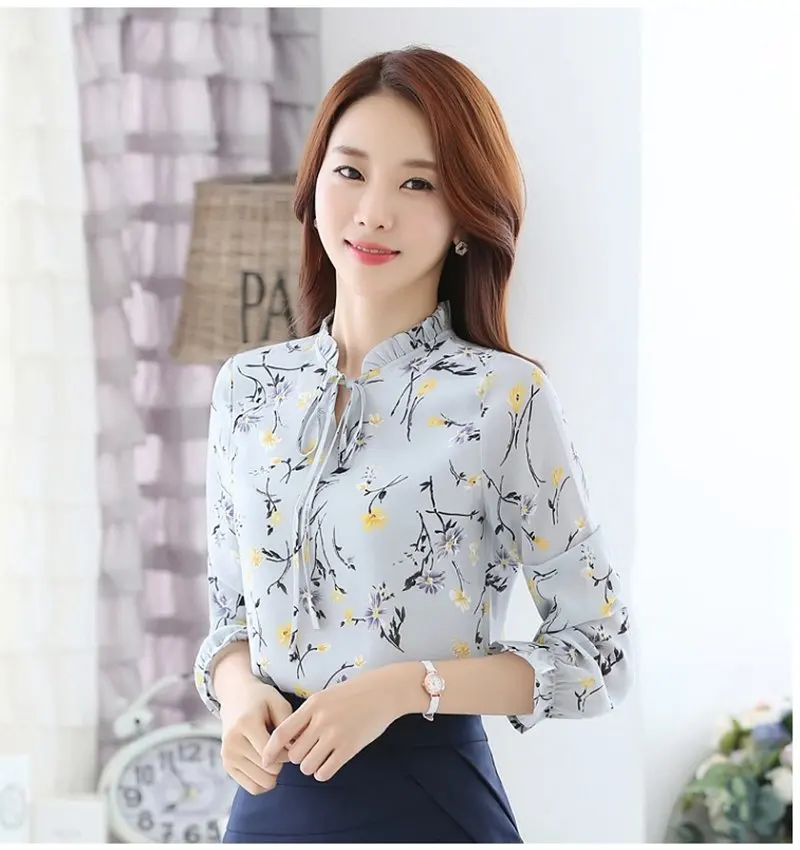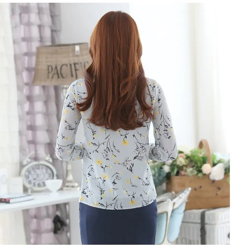 Blusa Feminina:Autumn Long Sleeve Femme Shirts Print Chiffon Women Blouses
