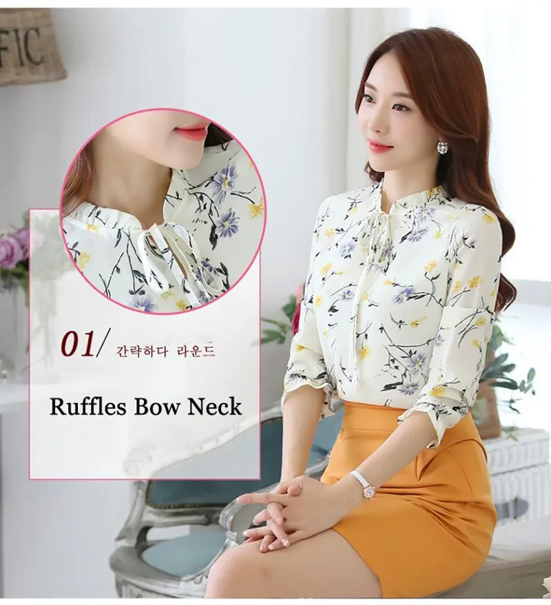 print blouse:korean fashion moda casuales coreana Brief work wear coreen mode