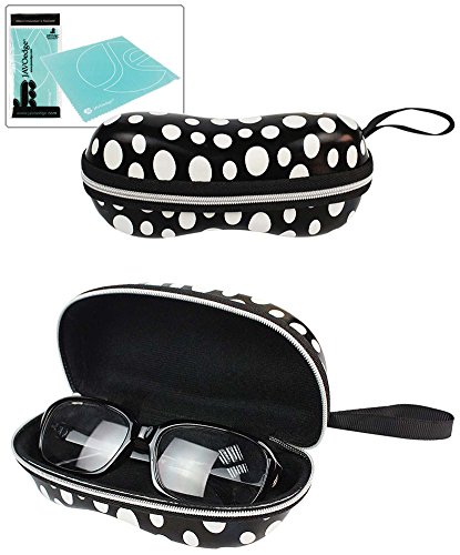 Studio : JAVOedge Publisher : JAVOedge Binding : Apparel Product Description Protect your sunglasses in designer looks at a fraction of the cost! The polka dot printed zipper sunglass case is perfect for the stylish, yet sophisticated person who is looking for a fabulous and trendy sunglass case. Ideal for protecting and storing your large sunglasses, this hard case features a smooth interior to keep your sunglasses looking new. The sturdy case is easy to open, and the zipper opening and closing keeps the case securely shut when closed. The case has a hook on the side for easy storage. Protect your sunglasses while making a statement with this trendy sunglass case! 0