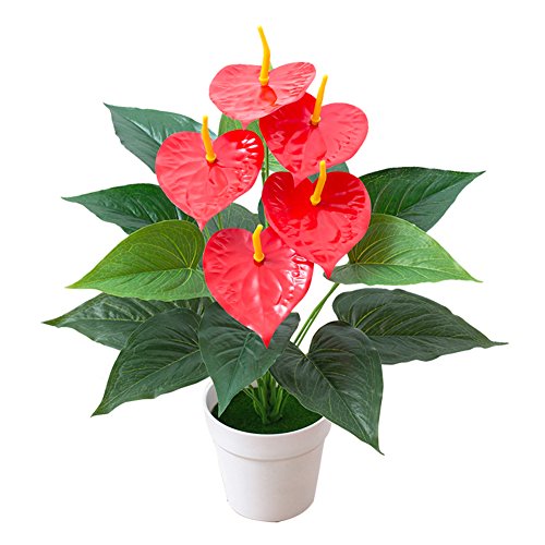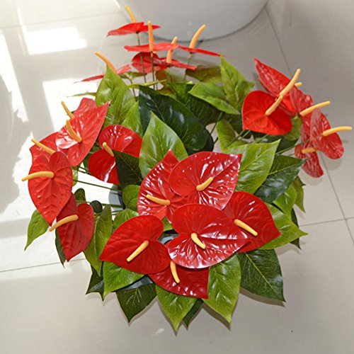 21" 53cm Artificial Tropical Plant Real Touch Anthurium Bouquet flowers 5 Heads Wedding Home Decoration