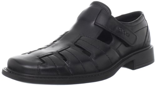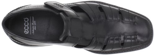 Amazon.com Strap into stylish good looks with this fisherman sandal from ECCO. The New Jersey features a stitched leather upper with a hook and loop strap for a secure fit. Beneath, a grippy manmade sole delivers traction on or off the street. 0