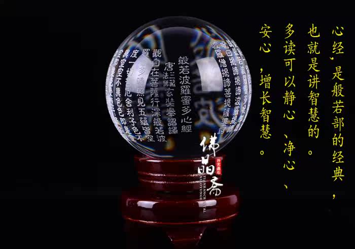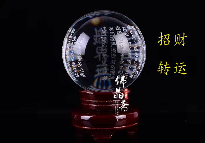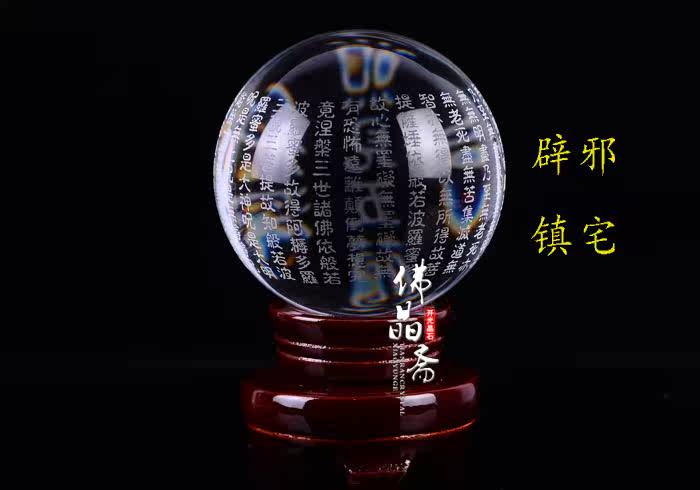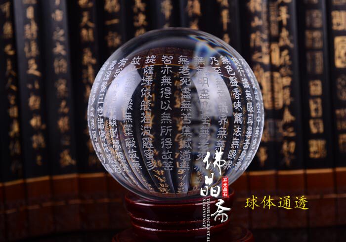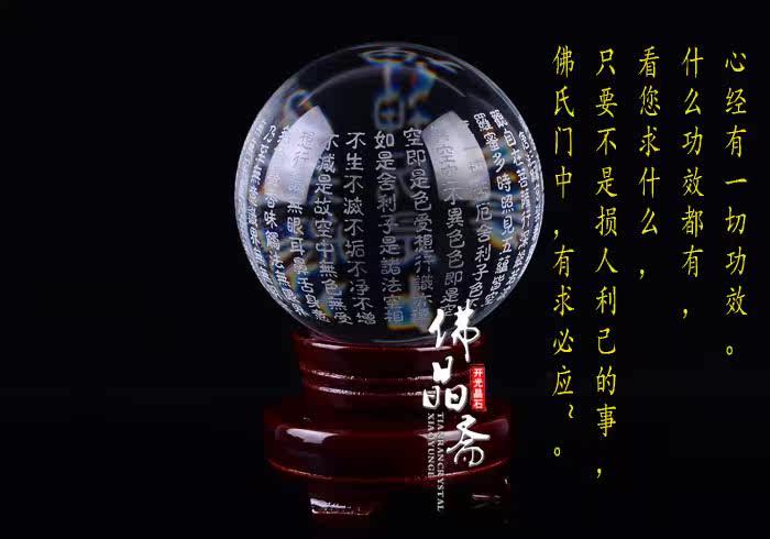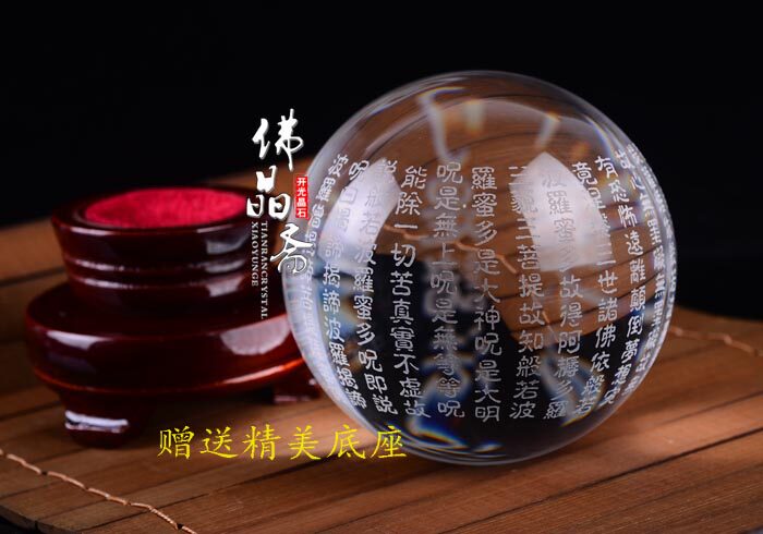 Great Compassion Mantra crystal ball/Dàbēi Zhòu开光正品般若波罗蜜多心经摆件白水晶球般若大悲咒 辟邪 镇宅转