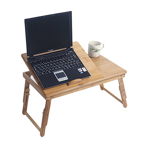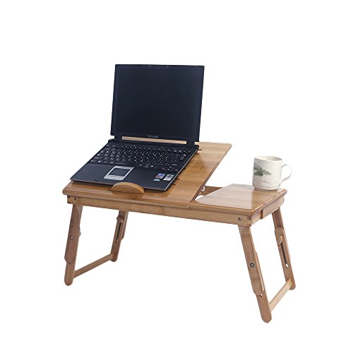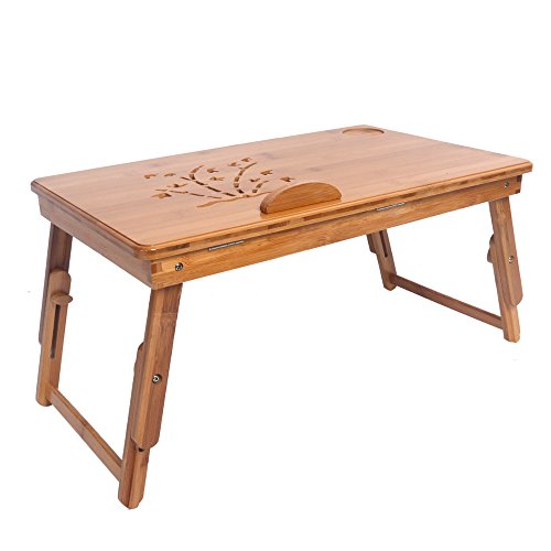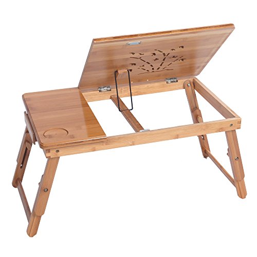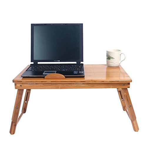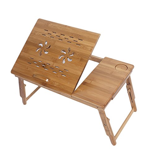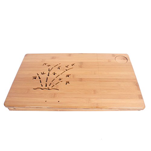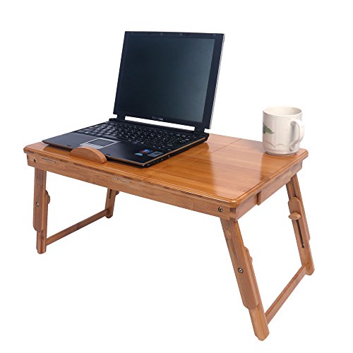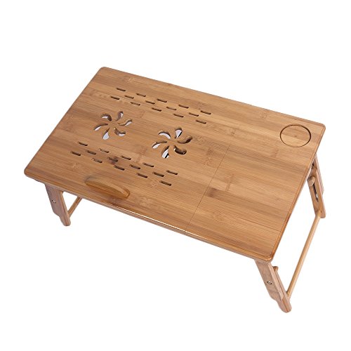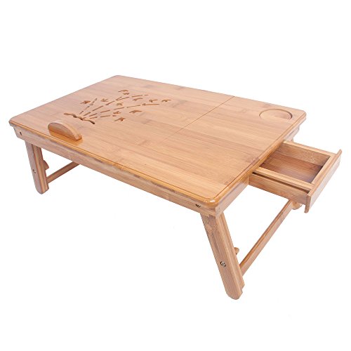 -. Feature : This laptop bed tray finished by Natural Eco-friendly and sturdy bamboo board, environment friendly and looks fantastic. / You can use the bamboo laptop desk in many places and many ways. Used for surfing the Internet with your computer, use it for eating food, drawing, reading, doing homework on the bed, sofa, floor, car, etc. Very useful and convenient to move into any room in the house. / Our laptop table has adjustable legs' length and 5 slots tray tilting angles to give you a better viewing experience. And with the convenient worry-saving cup-groove, small drawer for storing pen, note pad or phone , A stopper prevents your laptop from slipping from the desktop. / Both the cooling function, beautiful hollowed out swirl-shaped desktop design for better heat dissipating. With aesthetic and practical function. / Small storage drawer for sort out pen, note pad, USB cable, flash disk, paper clips etc.