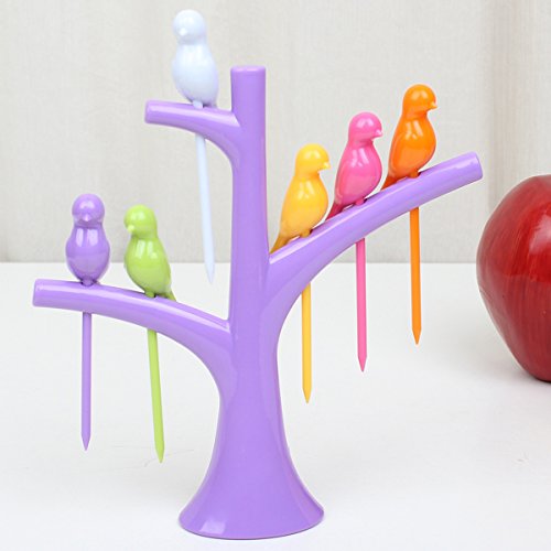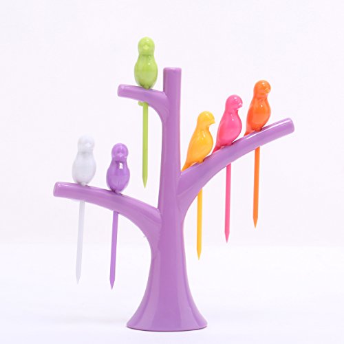 Musiclily Birds Tree Appetizer Cocktail and Fruit Forks Holder Set for Lunch Party Bento Dessert Snack Salad for Decoration, Purple Tree( 6 Piece/1Set)