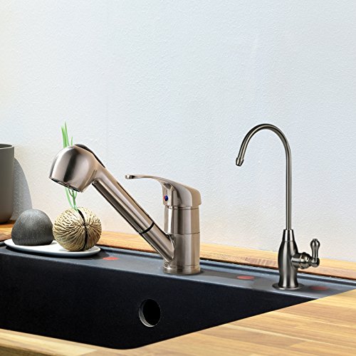 iSpring GK1-BN 5.5"x10.5" 13oz Solid Brass Heavy Duty Water Filter Designer Faucet - Coke Shaped High-Spout, Brushed Nickel
