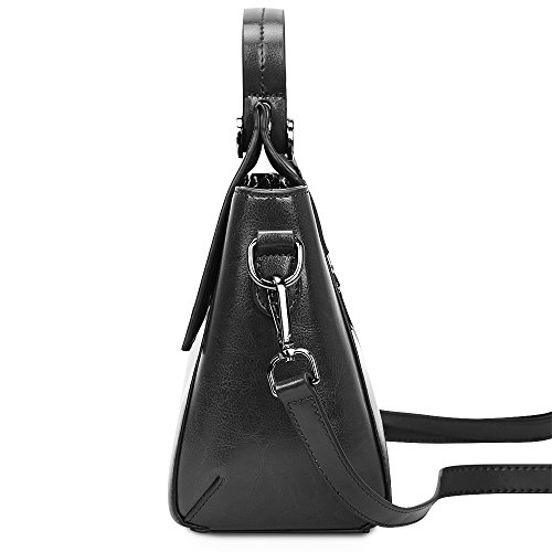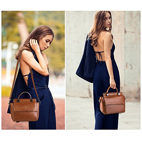 -. Feature : Dimension(L*W*H)--9.1"*3.9"*7.1". Adjustable and detachable long shoulder strap height: 44.9"-47.2"/114cm-120cm. Top-handle height: 3.1"/8cm. Net weight: about 1.65pounds/0.75kg. Please note that this is a SMALL cross-body&shoulder bag, please confirm the dimensions of the bag before your purchase. / Material--Made of high quality Genuine Split Cow Leather (oil wax finished) and microfiber pu leather. It also equipped with gun metal color hardware and anti-wear lining. / Structure--External: 1 back outside zipper pocket, four metal rivets on the bottom to protect the leather. Internal: 1 central zipper pocket, 1 side zipper pocket and another 2 open pockets for small things such as keys/lipsticks. / Design--Flap top with double magnetic buttons closure style. Two straps for you to use it as a shoulder bag, crossbody bag or handbag. / Versatile--This fashion and stylish bag suits to girls, women for work, party, business, school, traveling companion, dating , shopping or daily using. And it is a perfect idea as a Birthday Gift, Mothers' Day Gift, Christmas gifts for women, girls, mom, ladies, friends, her or colleague.